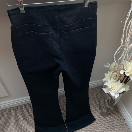 Black mid rise flare jeans/trousers with button details from INC International Concepts. Stretchy and comfortable.