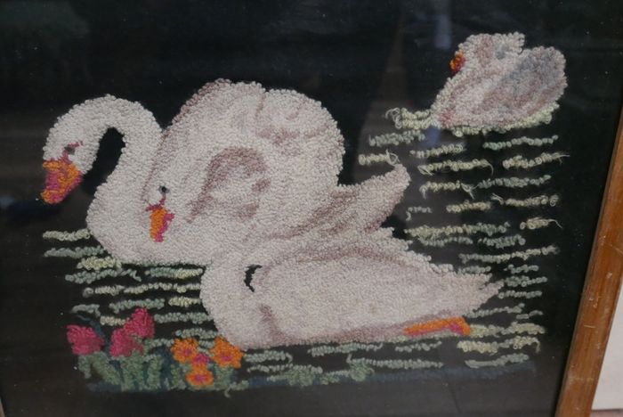 Vintage Fire Screen with Swans Embroidery inset behind glass.