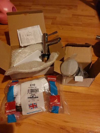 Brand new hot and cold Basin taps plus the bottle trap and un-slotted Basin waste.