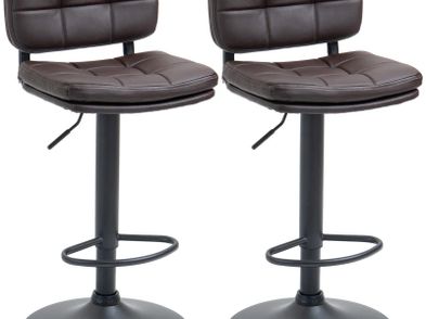 Swivel Bar Stools Set of 2 Dining Chairs Barstools Adjustable Height with Footrest for Kitchen Counter Home Bar Brown