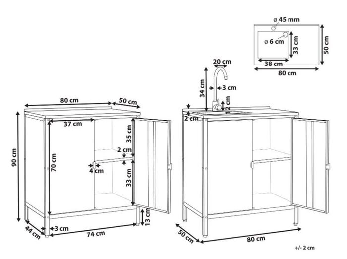 Cabinet Dimensions: 80 x 50 x 90 cm