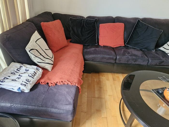 A beautiful and spacious Corner Sofa to complete any living room! This sofa is comprised of two individual parts that can be fastened together with the locking mechanism, creating one single piece Corner, or "L-Shaped", Sofa. Both pieces can also be separated, effectively creating two individual sofas.