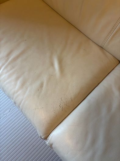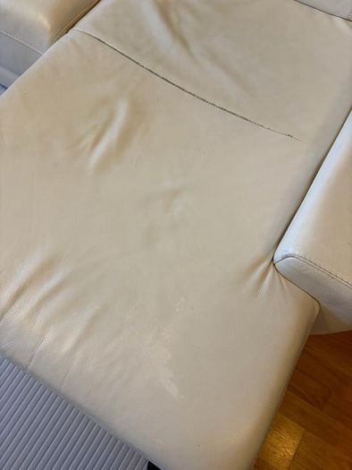 Elegant cream leather corner sofa in good condition, perfect for any modern living room. The sofa features a spacious chaise lounge, adjustable headrests, and genuine leather that is comfortable and easy to maintain.